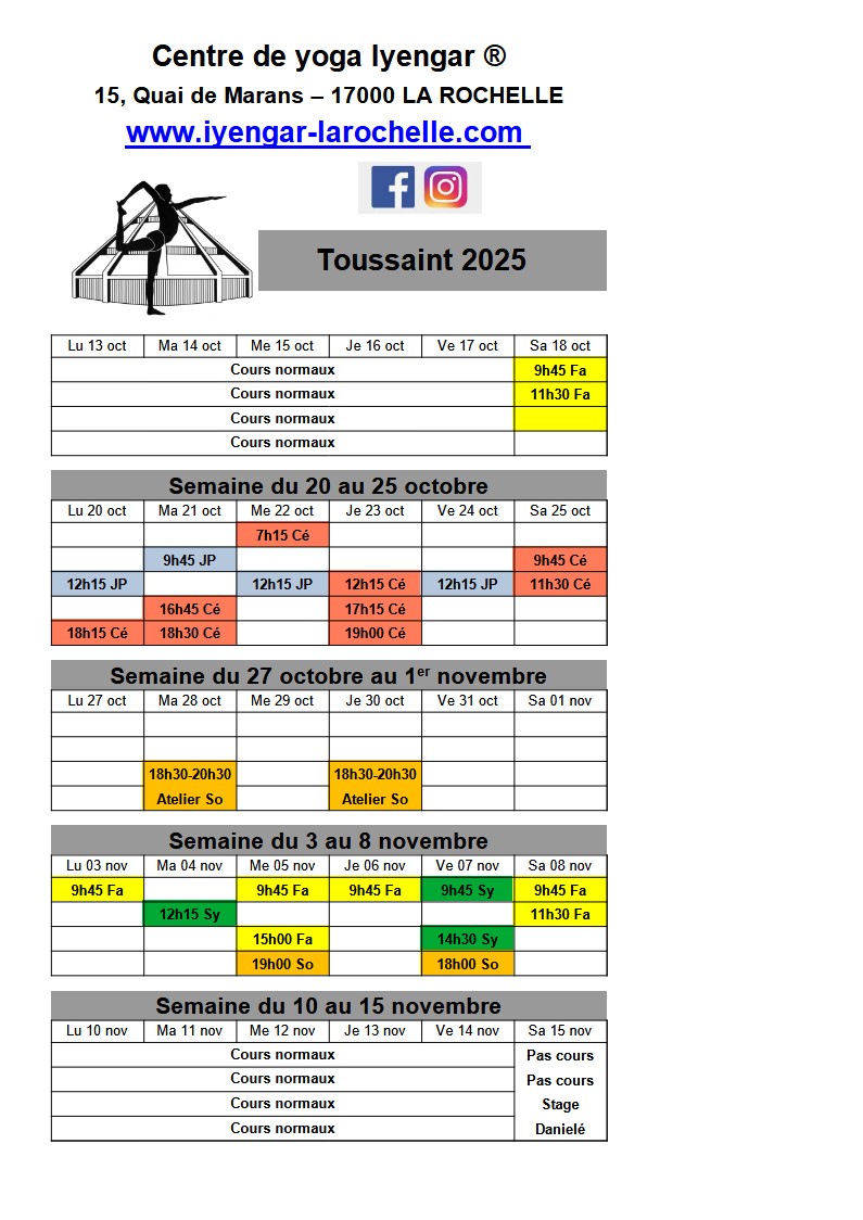 Cécile et Jean-Paul font cours la première semaine des vacances, mais pas du 3 au 8 novembre